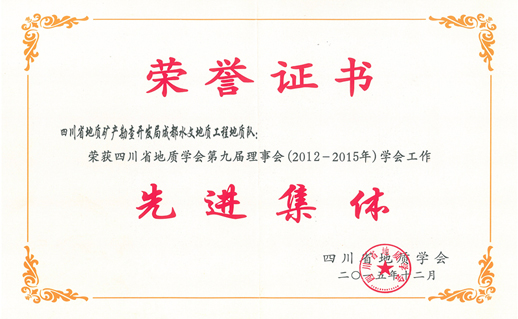 我隊榮獲第九屆四川省地質學會先進集體榮譽稱號