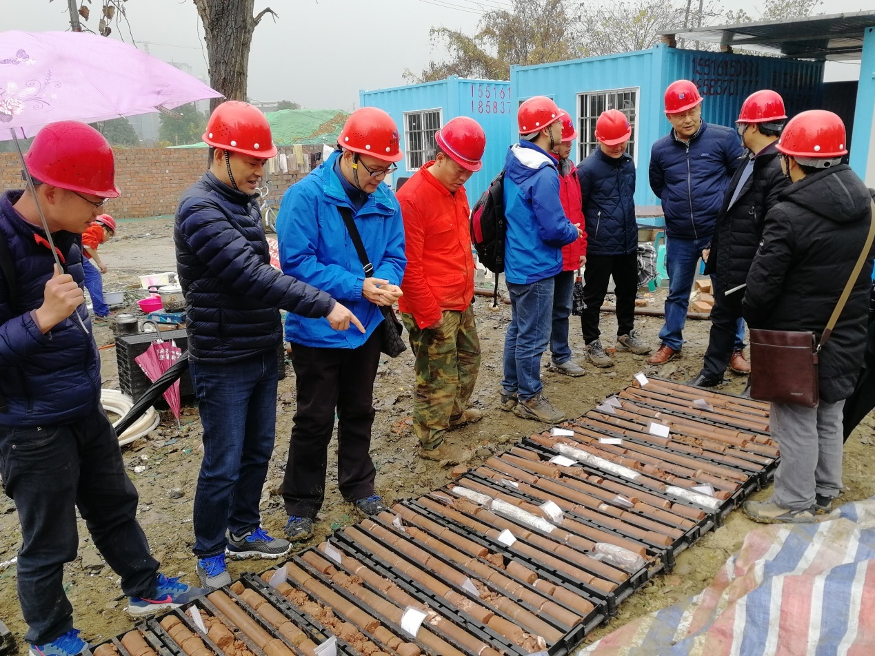 項目組現場負責人胡亞召首先向檢查指導組詳細匯報了項目前期協調、野外鉆探、物探、三維建模等工作情況,副總工程師劉宗祥一行對野外鉆探工作進行了全面質量、安全檢查。劉宗祥一行重點檢查了施工安全教育、場地擺放、巖芯及原位測試情況,詳細詢問了現場鉆機工人進場安全培訓,并查看了安全教育記錄,在肯定項目組前期工作及安全文明施工的同時,也指出了項目組存在的不足:一是在城區施工由于協調問題導致進度較慢,應做好溝通和調整;二是環保方面如進入場地便道、泥漿池排放、清理等應有具體處置措施。