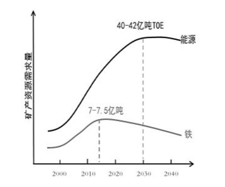 王安建教授介紹,中國進入工業化中期轉型調整期,重要大宗礦產資源需求還在緩慢增長, 將在2025年前后陸續達到頂點。盡管資源需求增速放緩,但是資源需求仍將處于高位運行,資源需求總量仍然巨大。