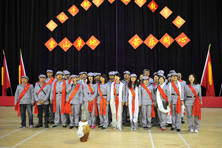 培訓(xùn)期間,隊伍打紅旗,學(xué)員穿紅軍服、戴紅軍帽、背紅軍包、纏綁腿、系皮帶、戴校徽,出行列隊整齊有序,成為一支紅色勁旅。學(xué)員們通過“吃紅軍飯、唱紅軍歌、走紅軍路”的培訓(xùn)形式,經(jīng)過長征歷史理論教學(xué)、參觀馬爾康紅軍長征紀念館現(xiàn)場教學(xué)、過草地穿越日干喬大沼澤體驗教學(xué),學(xué)習(xí)紅軍隊伍的堅強斗志,體驗紅軍長征中的艱難困苦。